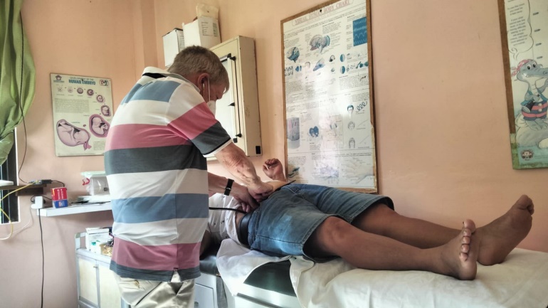 Dr. Christian Nick und seine Frau Bärbel waren im selben Flugzeug wie Dr. Nikola Gebauer. Dr. Nick übernahm die Klinik sofort und behandelte die Patienten dort, sodass ich wirklich entlastet war und andere Aufgaben erledigen konnte. Da er schon hier war, lebte er sich schnell wieder ein und gab mir wertvolle Tipps und Hilfestellungen für den Alltag, sodass ich die Patienten künftig besser betreuen kann. Ich lerne immer wieder viel von ihm und bin dafür sehr dankbar. Die Patienten waren froh über