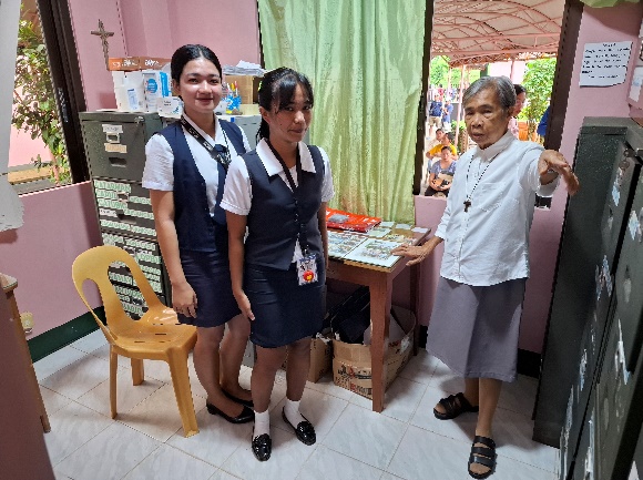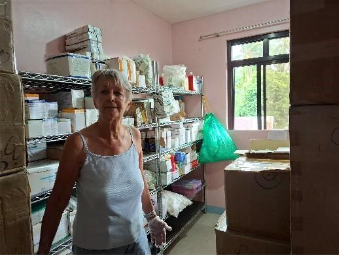 Vom 21. bis zum 26. Februar kam Marion Schlohsnagel aus Koblenz zu uns. Sie besuchte ihren Sohn Philipp in Manila und nutzte, wie jedes Jahr, die Zeit, auch zu uns zu kommen, um zu helfen. Sie räumte unser Verbandsmateriallager auf und sortierte alles und beschriftete es, sodass jeder gut zurechtkommen kann. Es ist eine riesige Hilfe, da ich oft nicht dazu komme, den Raum aufzuräumen, da ich zu viel Arbeit in der Klinik habe. Durch die Beschriftungen in Deutsch und Englisch können nun auch die Freiwilligen die