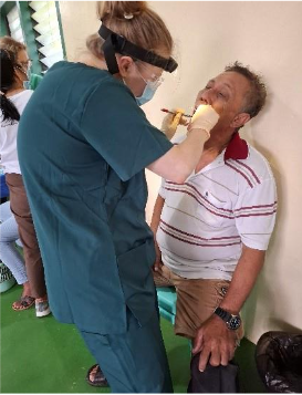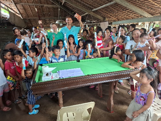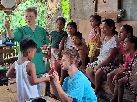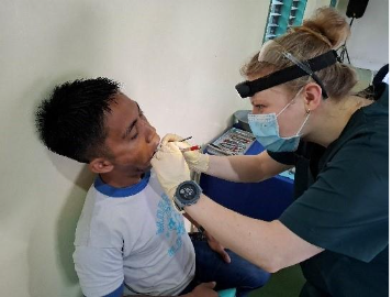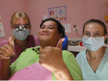 Am 16. Februar kamen Lena Klein, Annika Pfaller, Alexander Manolow (Freiburg) sowie Sophia Weiß (Regensburg). Sie übernahmen die Zahnklinik sofort. Für zwei Tage unternahmen Lena Klein, Annika Pfaller und Sophia Weiß eine sogenannte Dental-Mission. Dort wurden Zähne gezogen und die Kinder eine Prophylaxe durchgeführt. Das Ganze fand in einer Art „Sporthalle“ statt. Sie wurden von der Präsidentin der Dental-Assoziation Nord-Samar eingeladen. Ich glaube, die lokalen Zahnärzte wollten sehen,