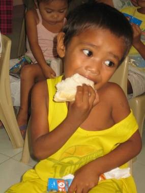 Unser Ernährungsprogramm ist das ganze Jahr über fortlaufend und wird vom Deutschen Club in Manila unterstützt. Leider ist Unterernährung hier immer noch ein großes Thema, und viele der kranken Kinder, die wir täglich sehen, befinden sich in einem stark reduzierten Ernährungszustand und daher empfänglich für Krankheiten. Die Kinder werden entwurmt, bekommen Vitaminpräparate und jede warme Mahlzeit.